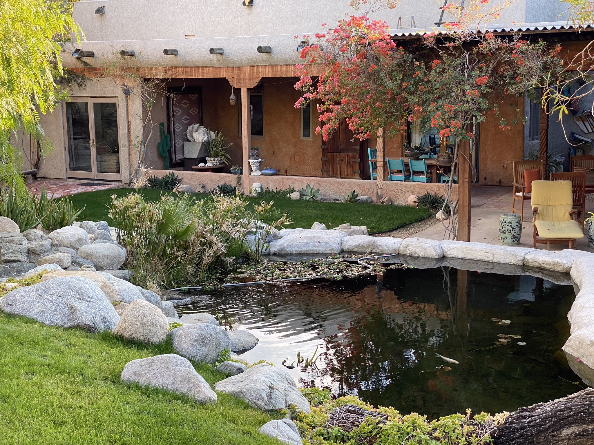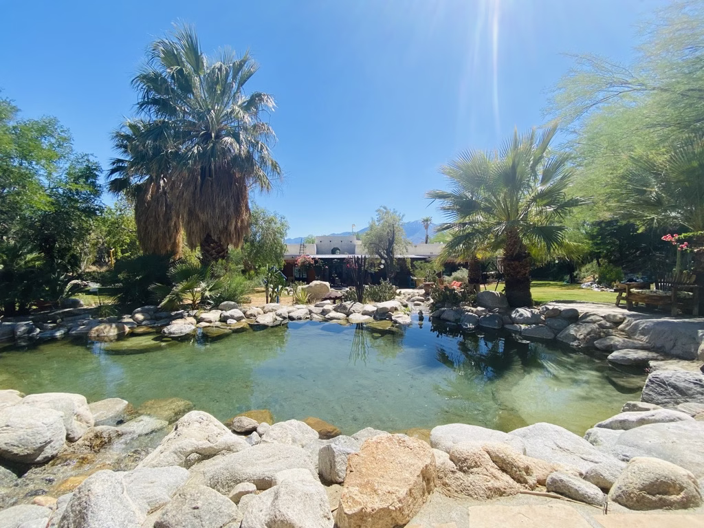 Only twenty minutes up the hill from Palm Springs lies a hidden gem, three lovely homes on 107 acres of unmatched desert beauty. The Bubbling Wells Oasis is a sanctuary uniquely situated to host your memorable family gathering, life event, or group retreat. Pick one, two or all three homes. Your two-night minimum stay includes 24/7 use of our Osana-style hot mineral soaking pool at Yerxa Town, two natural oasis lakes with a rowboat, miles of hiking trails, the Old West Style Yerxa Town gathering space with covered patio and gas bbq/fire pits. Reserve the Grand Estate or the Entire Ranch for use 24/7 use of the private second mineral pool and Koi Pond grotto, indoor swim spa, and workout room in addition to use of the common areas and hiking trails. Events and retreats may be reserved for Event Fees (ask for a quote).